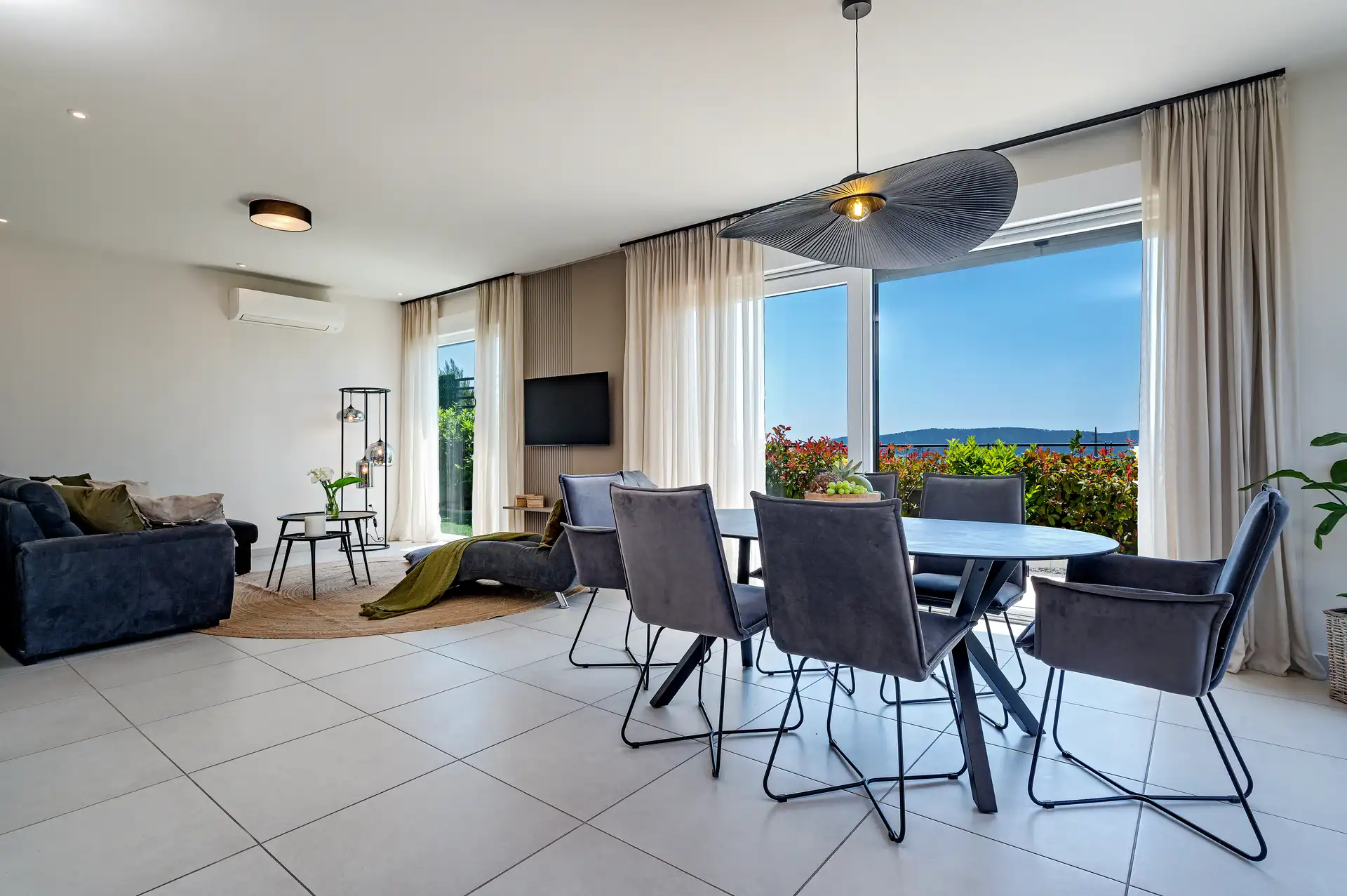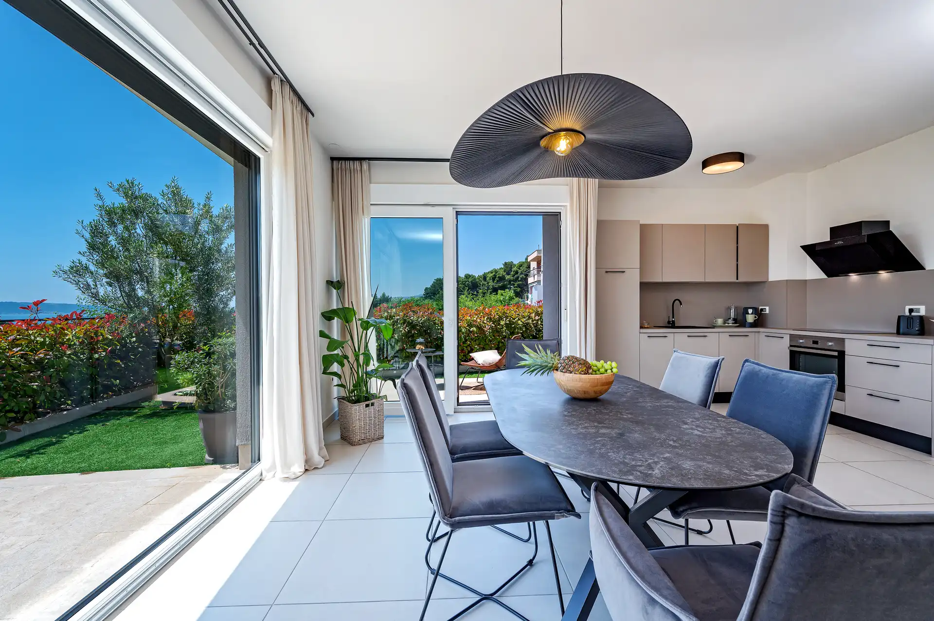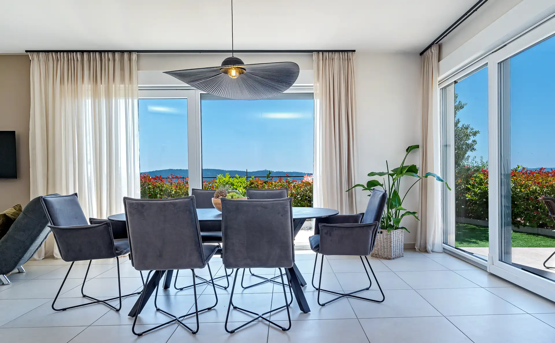 Whether you are enjoying a quiet morning in the hanging swing chair or hosting a sunset dinner on the terrace, the lush garden and sea views provide a tranquil backdrop for your Croatian holiday.